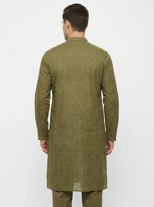 Aranya Green Cotton Silk Printed Kurta
