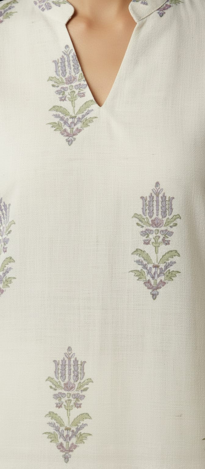 Embrace understated elegance with this beautifully designed ivory printed short kurti co-ord set, crafted for a clean and refined everyday look. Featuring delicate floral motifs on a soothing base, this outfit brings a perfect balance of minimal style and ethnic charm.